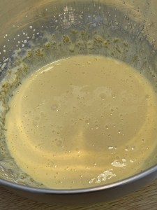 Tu mélanges ensemble la farine et la maizena et ensuite dans un chinois (pour éviter les grumeaux), et tu l’ajoutes progressivement dans le mélanges jaune-sucre. Et tu mélanges au fouet, tu dois obtenir un mélange homogène et lisse.