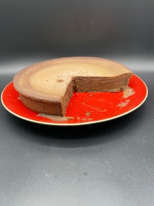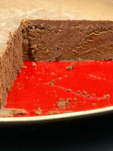 - versez le glaçage dessus (attendre que le mélange choco et beurrer refroidisse un peu avant de le verser pour éviter que celui ci ne coule pas partout 😉 ).