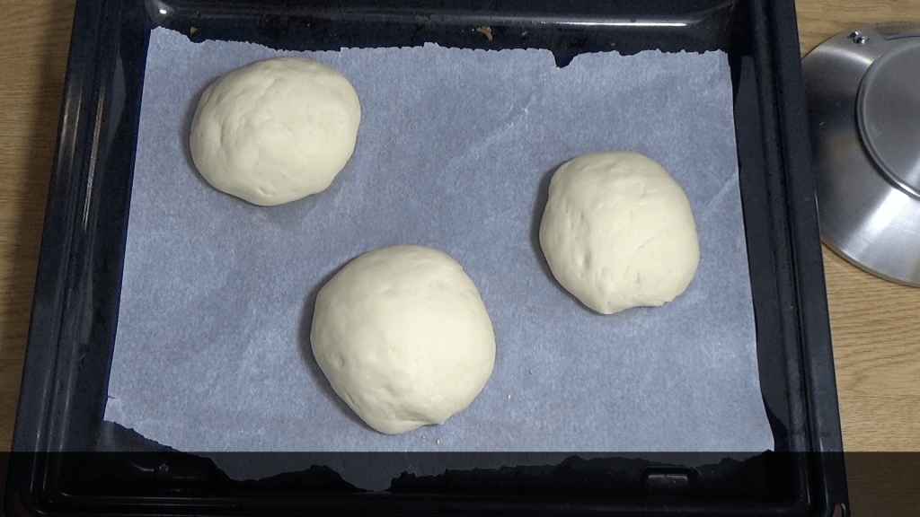 - La partager en 4 ou 6 boules selon la taille de burger désirée, bon comme j’ai des gourmands c’est 3 pour moi, en faire des boules et les aplatir légèrement. Les déposer sur une feuille de papier cuisson.