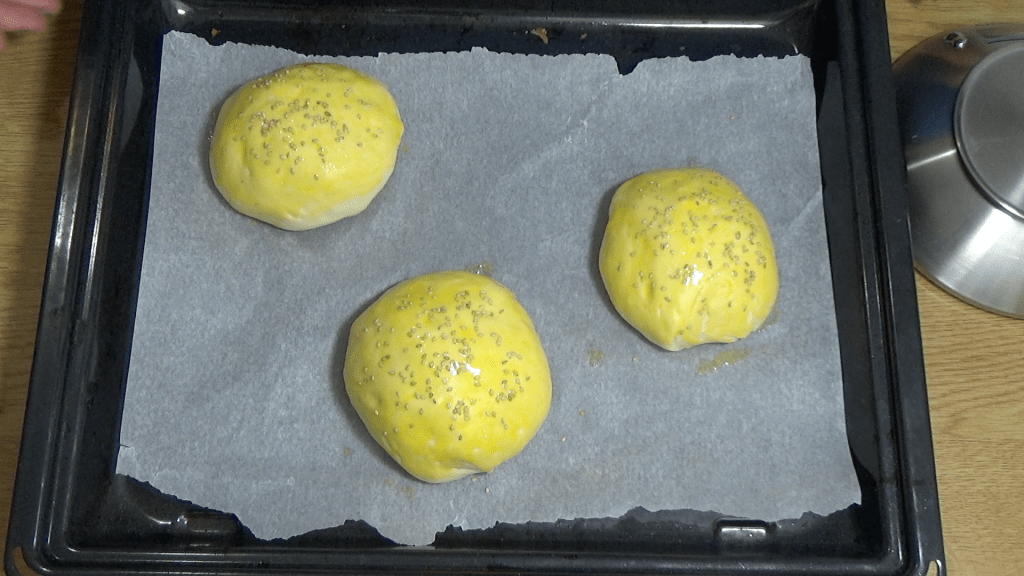- Déposez le jaune d’oeuf à l’aide d’un pinceau sur les pains.